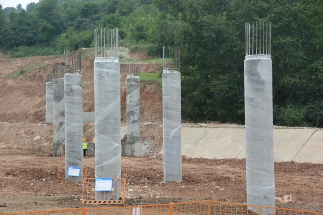 来到K18+406.5牛津河二号大桥的施工现场,正在进行系梁、墩柱等下部施工。据了解,本项目主线共有桥梁824.08m/8座,其中大桥538m/3座,中桥255.04/4座,小桥31.04/1座,马家堡镇连接线有中桥53.54m/1座,全线桩基共134根,目前已完成84根,检测完成25根。