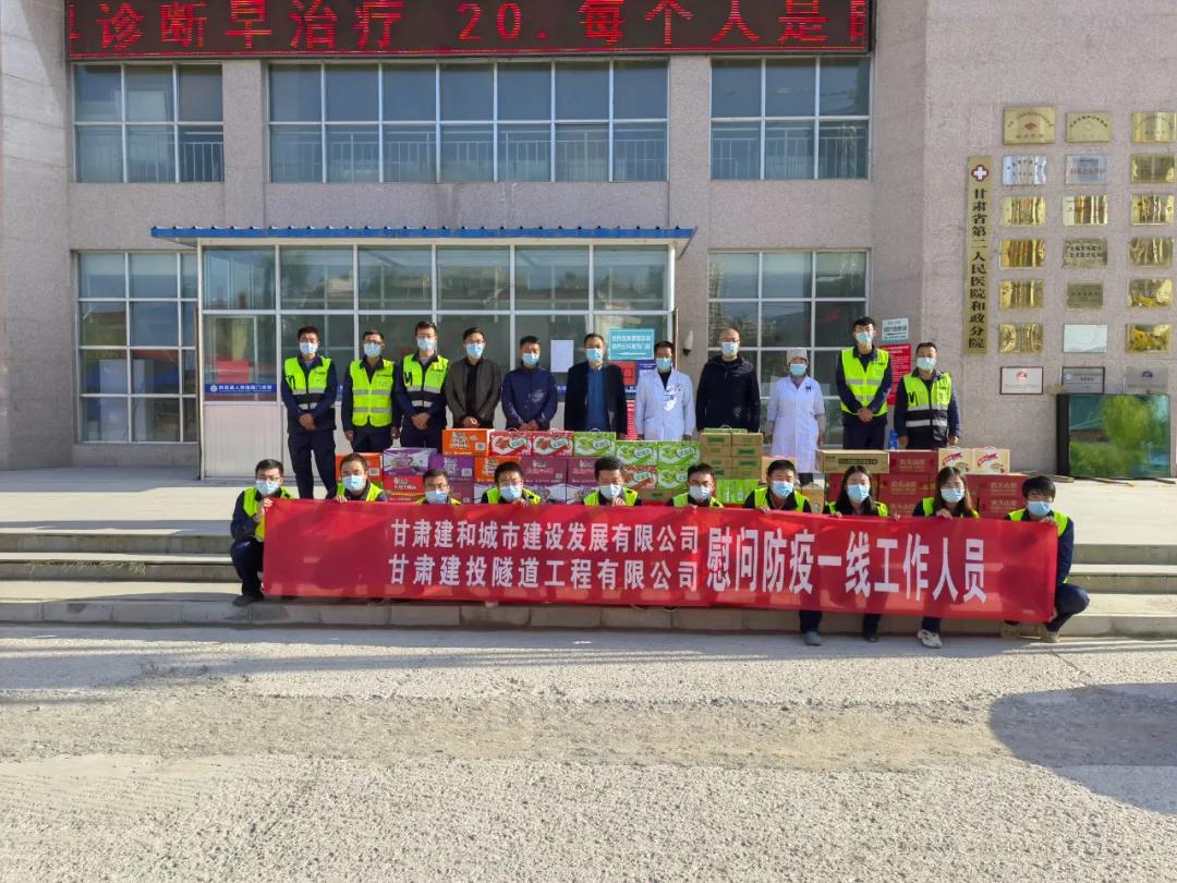 疫情无情人有情,特殊时期,隧道公司一公司和政县综合农贸市场及冷链物流仓储中心建设项目(一期工程)项目部全体职工自发走上疫情第一线,向一线工作人员送去疫情防控物资,并向他们致以崇高的敬意。