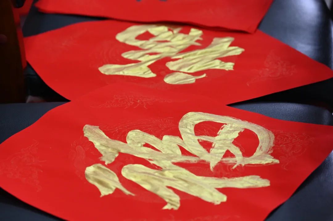 “月里嫦娥舒袖舞,人间玉兔报春来”“金虎归山辞旧去,玉兔下凡迎春来”……活动现场,交科公司书法爱好者抻纸、蘸墨、落笔,起承转合之间,将带着辞旧迎新的美好祝愿,化作一张张寓意吉祥的书法作品显在“中国红”纸上。行、楷、隶、篆等不同书体不同风格的春联,字体潇洒飘逸,尽显神韵,吸引了不少职工前来欣赏,他们兴致勃勃地挑“福”字、选春联,脸上洋溢着幸福的欢笑,同时感受到了“娘家人”的关怀。