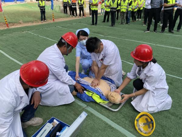 演练现场分别模拟了沟槽坍塌导致的人员压埋和有限空间作业中人员气体中毒情况,在险情危及人员生命财产安全的情况下,项目部启动应急救援工作。“报告指挥长,现场K0+400处污水沟槽发生坍塌,沟槽内人员共4人,目前撤离出3人,现有1人部分躯体被埋,伤势不明!”。模拟沟槽作业过程中边坡突然塌方,导致1名工人被塌方土体埋压,现场施工员发现后第一时间上报险情,随着指挥人员一声令下,各救援小组迅速抵达现场,按方案分工开展救援:应急救援组根据事故情况快速确定救援方案并组织人员车辆施救;医疗救护组在事故发生的第一时间内判断伤员伤情并进行有效急救;警戒保卫组立即设置禁区,做好现场监护防止二次塌方并引导救援人员及车辆快速进出;通讯联络组迅速联系医院及当地消防部门;事故调查组调查并分析事故发生的原因……演练过程中,参演人员反应迅速、各司其职,有条不紊推进演练高效进行,取得了预期效果。演练模拟施工人员在井下有限空间作业时,突发中毒窒息事件。“李工?李工?”协同作业人员发现井下人员没有回应,确认发生中毒情况,立刻向现场负责人报告异常情况,负责人立刻拨打119、120联系消防人员和医务人员进行救助,并立即开启应急救援预案。演练过程中,救援人员完成了对外联络、安全警戒、应急抢救等流程,做到信息上报及时、事故警戒迅速、人员救助合规,圆满完成了救援任务。