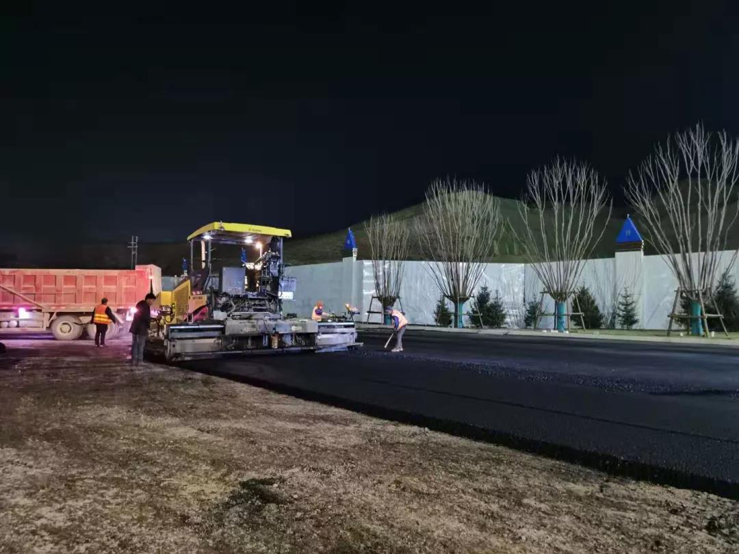 该项目工期要求紧,临时增加的混凝土路面、排水沟槽和文化旅游城大门外的坡下部分路段,让原本紧张的工期变得更为紧迫,但项目部全体人员不惧困难,项目班子对总进度计划进行了规划调整,并将项目部全部力量投入到该项工程中,从11月1日起,全员进入“战时状态”,所有人顶住压力,发扬不怕苦、不怕累的精神,加班加点奋战在施工一线,在保证工程安全质量的前提下,以最快速度推进项目进度。经过近20天的日夜兼程,截至11月20日,展示区道路桩号K0+000-K0+397段及文化旅游城大门外部分的面层的铺筑碾压,施工范围内的道路交通标线以及混凝土道路的浇筑、振捣、整平、精平、养护已全部完成。目前已完成计划进度的100%,日均进度6%,比计划工期提前4天完工。