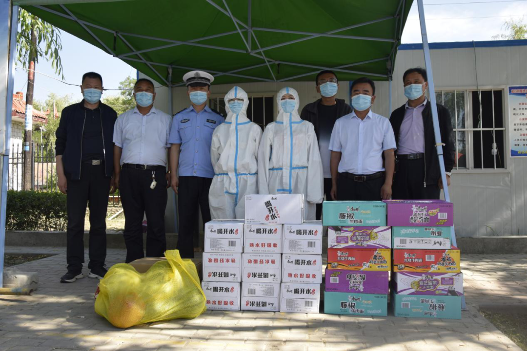 慰问组一行来到和政县交通执法联勤点、防疫检查关口为一线工作人员送去了矿泉水、方便面、西瓜等慰问品,对他们在高温天气执勤一线的默默坚守和付出致以感谢。