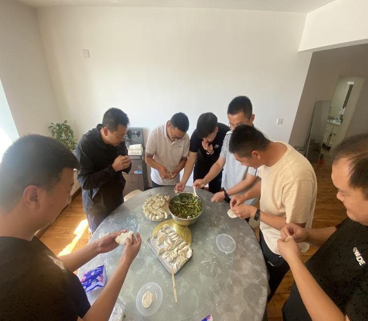 在三公司食堂,领导班子与职工一起包饺子、说家常。受疫情影响,很多职工无法回家与家人团聚,公司组织职工团聚包饺子,让职工体会到了公司这个大家庭的温暖和祝福。在轻松愉悦的氛围中,大家和面的和面,擀皮的擀皮,拌馅的拌馅,包饺子的包饺子……各式各样的饺子呈现在大家眼前,大家纷纷与自己的“作品”合影留念,食堂里洋溢着欢乐祥和的节日气氛。