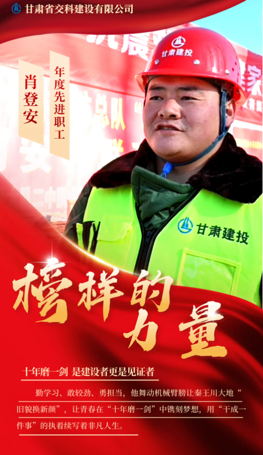 肖登安,2013年11月参加工作,现担任乐天堂fun88集团路政公司装载机司机。在项目施工中,他严格遵守机械操作规程,服从项目管理,踏实认真工作,苦练技能本领,十年来,第一批服务兰州新区发展建设的建设者中有他、第一支冲锋在前拉开项目建设的机械队伍中有他、第一个主动请缨前往积石山抗震救灾的建投青年中有他,他用十年磨一剑的韧劲,立志高远担大任,脚踏实地勇争先!