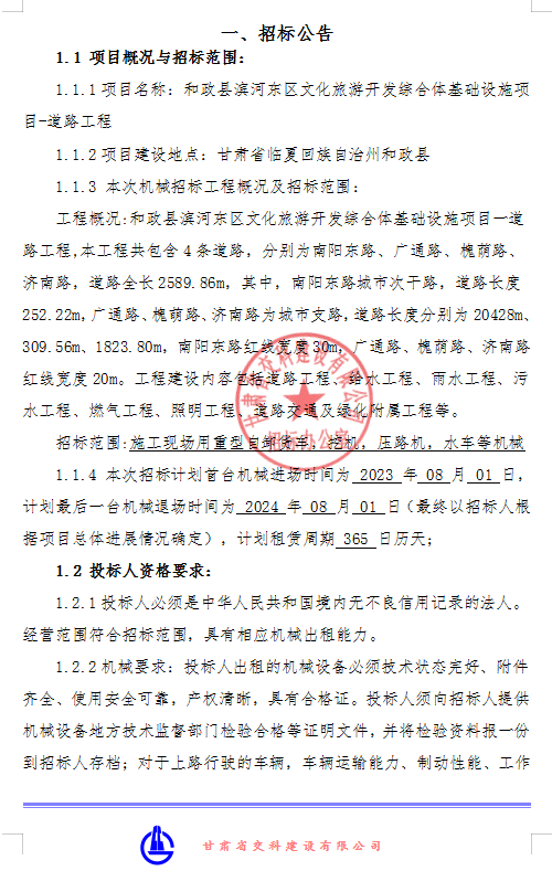 <h3>和政县滨河东区文化旅游开发综合体基础设施项目-道路工程机械租赁招标公告</h3>
