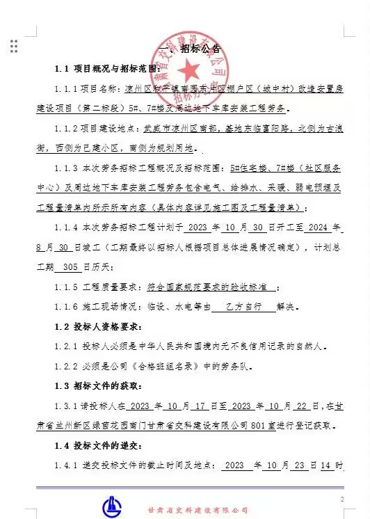 下一篇:东乡族自治县洮苑嘉园住宅小区项目劳务招标公告