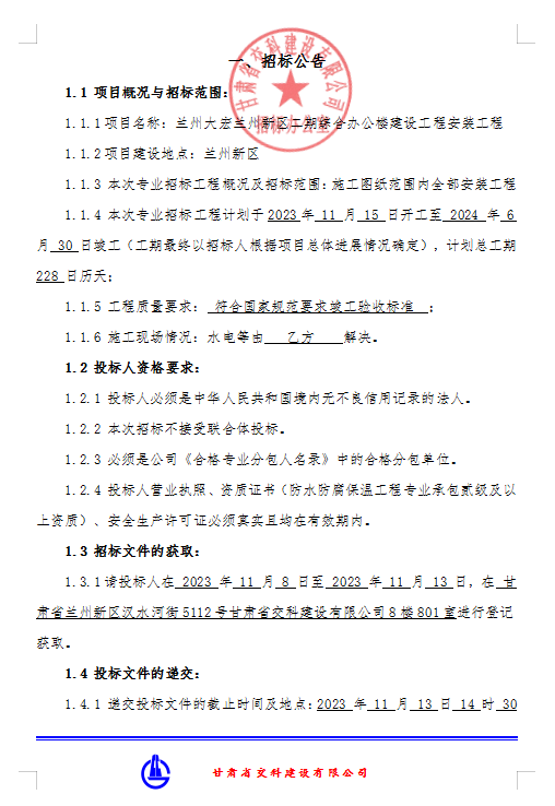 兰州大宏兰州新区二期综合办公楼建设工程-专业分包招标公告