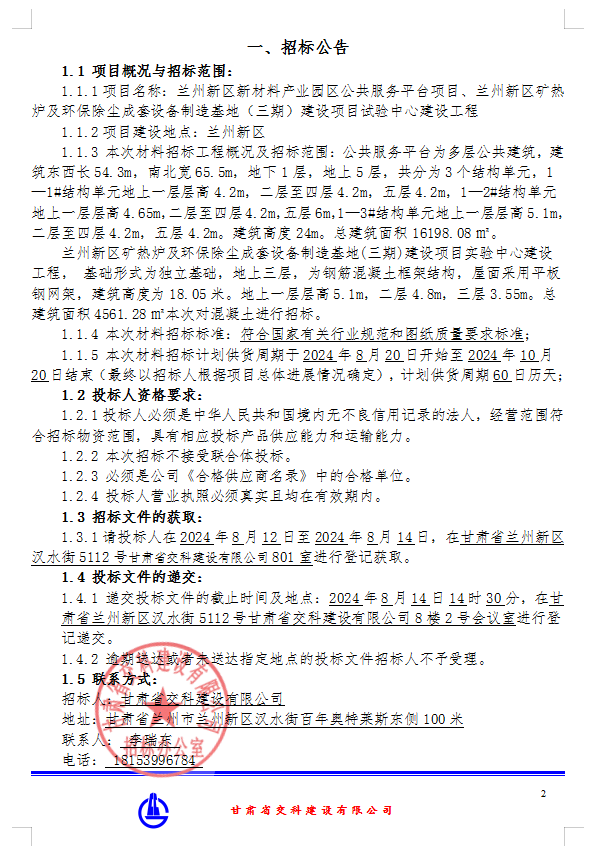 下一篇：兰州新区矿热炉及环保除尘成套设备制造基地（三期）建设项目试验中心建设工程-钢筋、模板、混凝土、综合脚手架-招标公告						</a>