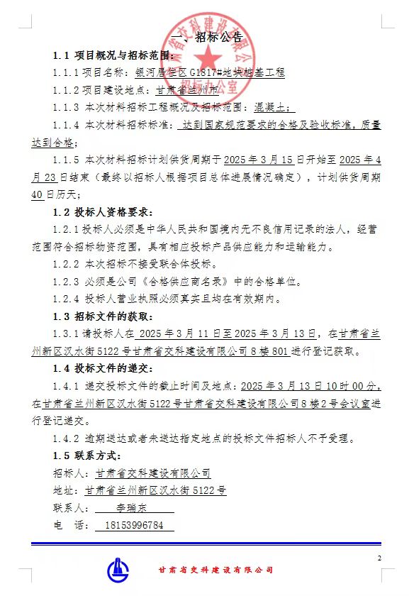 银河居住区G1817#地块桩基工程混凝土招标公告