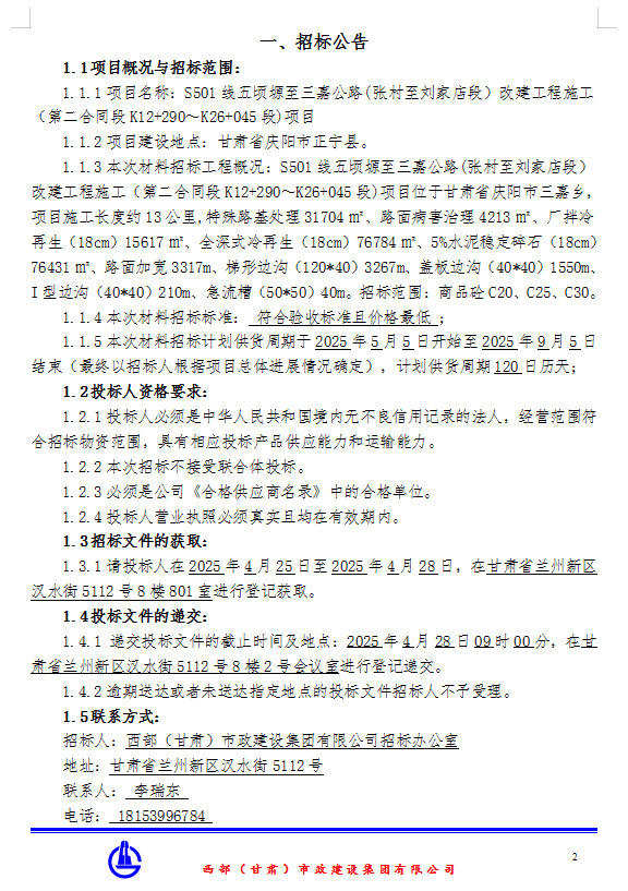 下一篇：S501线五顷塬至三嘉公路（张村至刘家店段）改造工程施工（第二合同段K12+290-K26+045段）项目水泥招标公告						</a>
